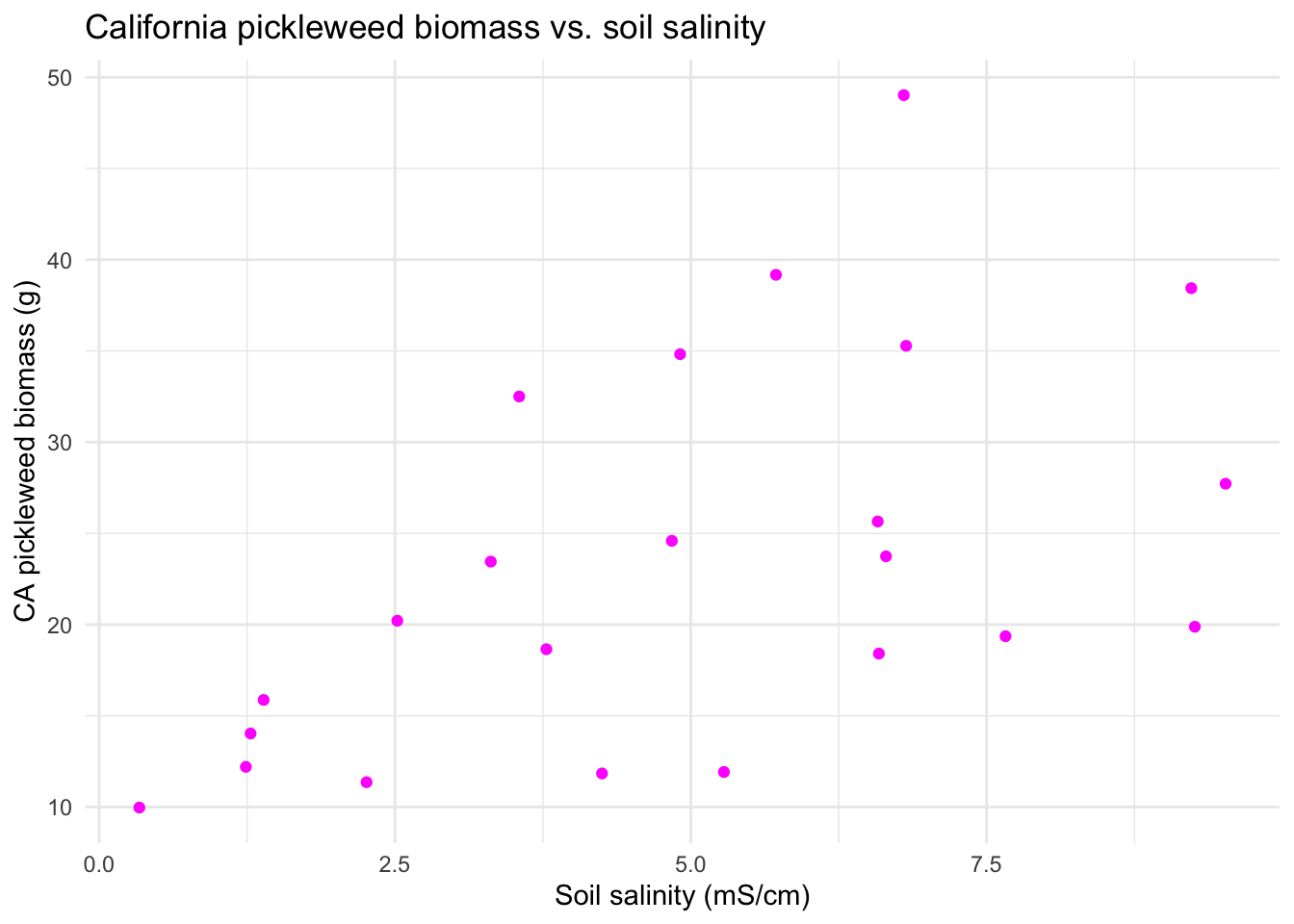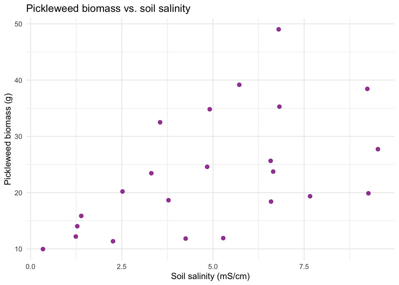 title = "Pickleweed biomass vs. soil salinity") + # creates title