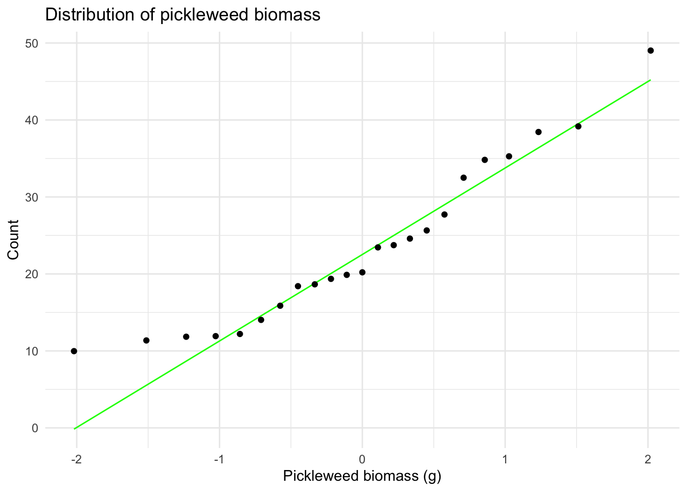 aes(sample = pickleweed)) + # uses salinity_mS_cm variable